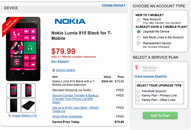 - Lumia 810 on a Classic Plan is $149.99 after a $50 mail-in-rebate card and with a two-year service agreement on qualifying voice and data plans.