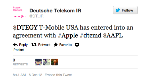 Breaking: T-Mobile USA and Apple have entered into an agreement to sell the Apple products on T-Mobile’s network in 2013.