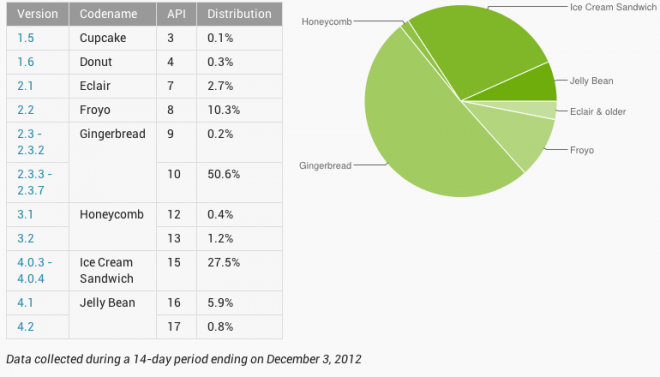 Cupcake, Donut, Eclair and Froyo still combine to make up 13.4% of Androids total market and we should just all admit there’s something seriously wrong with that number. However, those numbers are down from 15.5% combined from October, but there’s still plenty of room for improvement until we can get those numbers near or at zero.