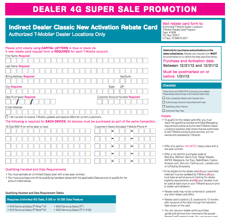 If you’re keeping a firm grip on your Classic Plans Magenta customers, fret not as the nations authorized dealers (non-corporate T-Mobile locations) are offering their own sale through the end of the year. This is a Samsung only deal with qualifications that require the line activating or upgrading having unlimited talk and text, and with a $30 data plan. Pretty standard stuff for T-Mobile sales.