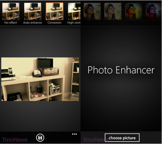 The Windows Phone 8 photo app jumps you right into “What’s New” and brings in all the recent images inside your Twitter and Facebook streams. One swipe to the right and you’ll be presented with a list of camera apps installed on the device. In this case, the stock Photo Enhancer is the only app I’ve installed since I’m not much of a filter or camera guru. Photo Enhancer on its own is pretty slick and it provides options to add filters, auto enhance, and pretty much go all Instagram with your images. It’s a meaningless addition if you haven’t jumped on the photo filter crazy train, but if you have, you’ll have some fun and it’s a nice addition overall.
