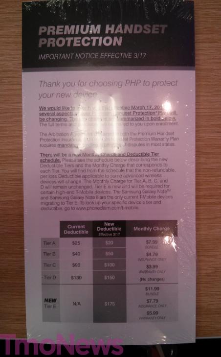 Barring the handset specifics and wild theories that this may somehow be related to the iPhone, the changes themselves are also notable. Beginning March 17th, “an additional PHP tier will be added for higher end devices, such as the Samsung Galaxy Note and Note II. In addition, the existing insurance deductible for the current Tiers will be updated to better align with our increasingly powerful and expensive phone lineup.”