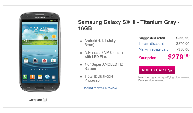 As expected, T-Mobile has released a 16GB Titanium Gray Samsung Galaxy S III to the world. Word has it most T-Mobile owned retail stores have already received their inventory of the device and I finally caught the device on T-Mobile’s website this morning. Perhaps it was on my end, but I glanced at the website a few times yesterday and didn’t see it listed as available.