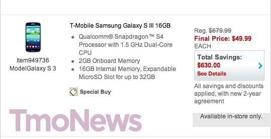 A quick little roundup of the latest deals on T-Mobile devices leads up first to Staples brick and mortar locations where you will find the Pebble Blue 16GB Galaxy S III for $49.99. The pricing is good for both new and qualifying upgrade customers and lasts through the end of today. It’s unfortunate that we didn’t know about this deal sooner, but you do still have the rest of the afternoon and evening to make your way down to your local Staples location and grab this offer before its gone.