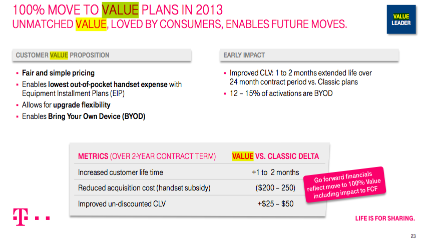 That point was also emphasized by AT&T Mobility Chief Executive Ralph de la Vega who stated his company is watching T-Mobile’s strategy unfold. De La Vega reiterated McAdam’s point — that as it stands now, there is little research to support consumers want to move away from the subsidy strategy to pay less per month.