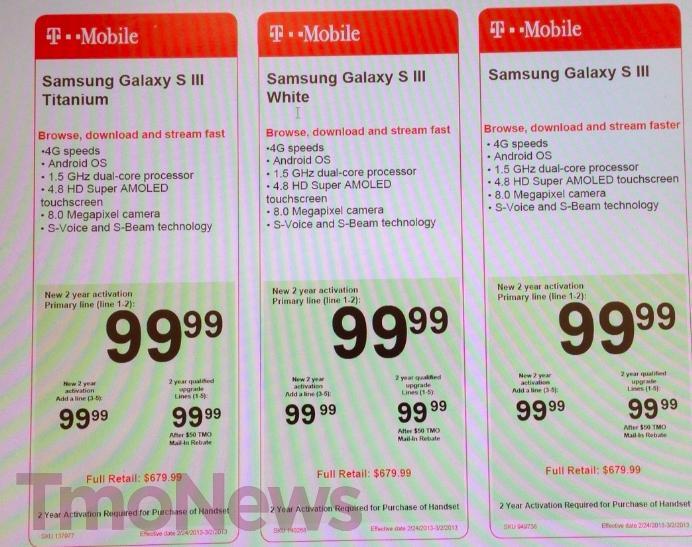 - Galaxy S III in Titanium, White and Blue – $99 after $50 mail-in rebate