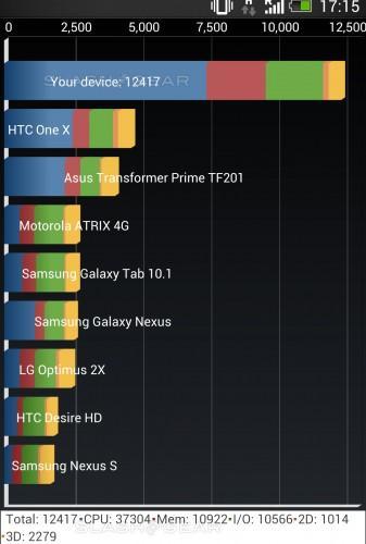 The Quadrant Benchmark test took the One’s Qualcomm Snapdragon 600 quad-core processor for a drive and well, just look at that score. Forget the HTC One X, the One blows everything else out of the water. For reference, the Snapdragon S4 Pro tucked away inside the Nexus 4 comes close to 5000 in Quadrant, but the HTC One hits 12,417. As for the individual markers you’ll find a CPU score of 37,304, Memory at 10,922, and I/O at 10,566. Comparatively, the Nexus 4 comes in with a CPU score of 10,687, Memory at 7,612 and I/O at 4,340.