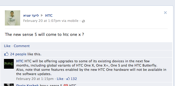 While HTC One S customers on T-Mobile wait, and wait, and wait a little more for their Jelly Bean update to arrive, HTC is already talking up Sense 5 upgrades. In response to a question on Facebook asking whether Sense 5 would come to the HTC One X, HTC answered: