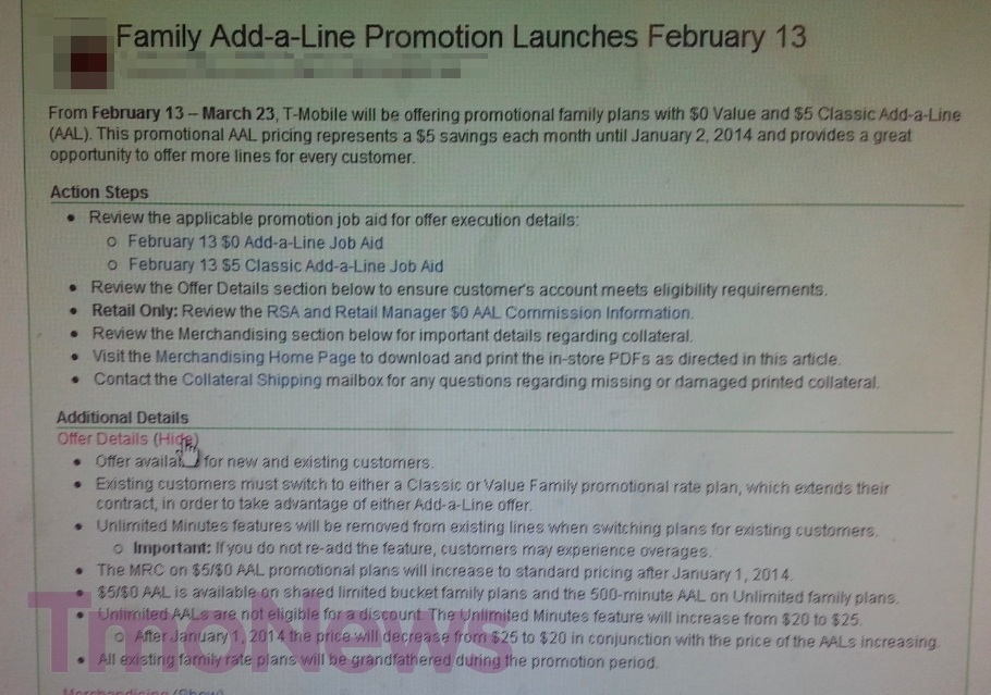 Beginning Wednesday, February 13th T-Mobile will offer a promotional family plan add-a-line option with $0 Value and $5 Classic add-a-line offers. This add-a-line promotion represents a $5 savings each month until January 2nd of next year.