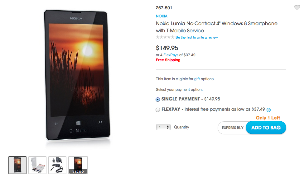 After a surprise announcement yesterday that had the Lumia 521 ready for an April 27th launch on the Home Shopping Network, it’s gone live a bit early. As the below image indicates, orders are already processing with the requisite car charger and screen protector included for the $149.95 price tag.