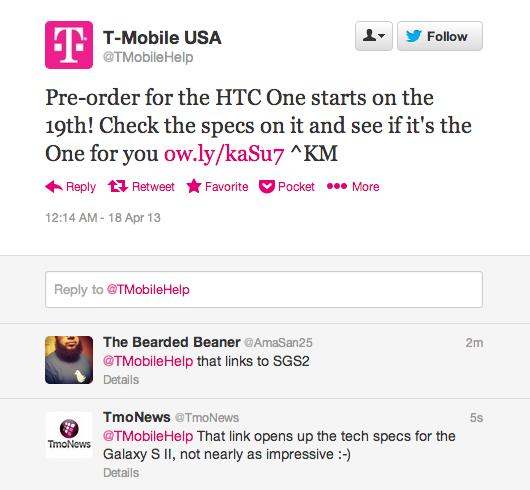 - Incidentally, T-Mobile’s @tmobilehelp Twitter account posted something last night in response to tweet about a pre-order beginning tomorrow. The tweet was quickly deleted and T-Mobile’s PR wouldn’t give a definitive answer on any pre-order questions.