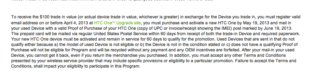 Surely you might be able to squeeze out more on eBay or Craigslist for your old device, but if you feel like the One trade-in offer is right for you, rest assured you have some more time to take advantage. The phone must be postmarked and mailed by June 19th. The full rules and details are available at the source link.