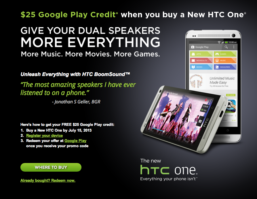 That sounds like a pretty decent offer for anyone purchasing the HTC One, I mean who wants to pass up $25 worth of free Google Play credits?