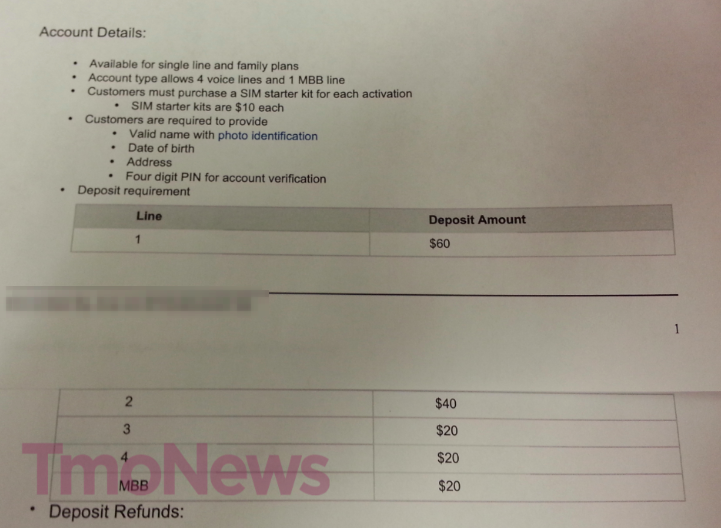 While the documents don’t go into specifics, we’re told the rates for customers who choose to go this route will be the same as what’s now offered and are specifically geared toward customers who don’t want to have their credit run. I’m also told there won’t be any EIP offered with this plan and customers will buy phones outright. The image itself hints at “the unbeatable value of 4 lines for $100/month with unlimited talk, text and web.”