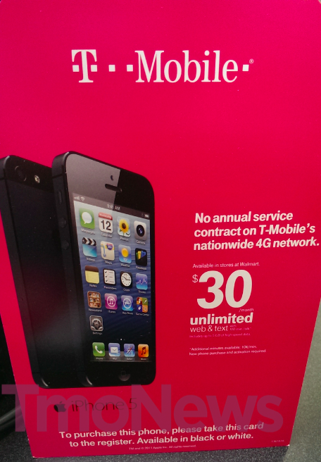 Still, regardless of which direction you take, the offer is still similar to Apple’s own store pricing which handily makes the Walmart pricing the best deal. The below image is now being placed in Walmart stores advertising the offer which is good for any of T-Mobile’s prepaid offerings.