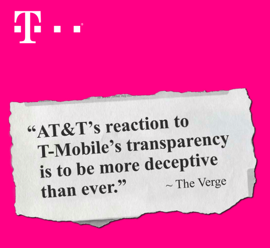The ad itself takes a quote from a Verge article which all but called AT&T’s ridiculous mathematics in trying to show its new “AT&T Next” program as a “good deal.”