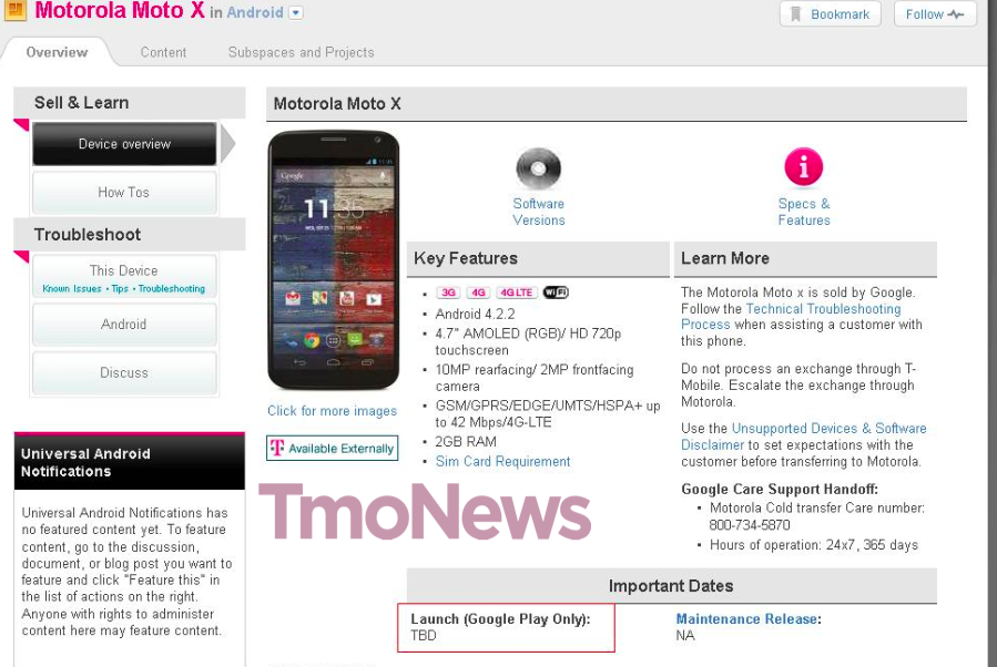 With lingering questions still surrounding the T-Mobile Moto X launch, perhaps this image that just landed in my inbox will help clear up some answers. According to the internal shot from T-Mobile, the Moto X will only be available through “Google Play.”