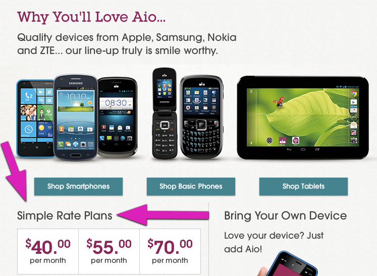 Let’s also talk about Aio’s use of the word “Simple” when describing their rate plans. Now, I’m not suggesting that anyone owns the word “Simple” and every carrier can and may use it, but in the case of Aio, it just looks funny.