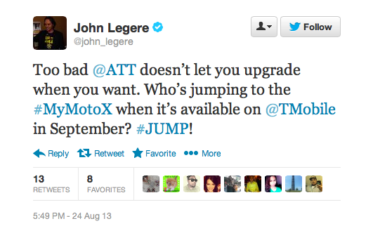 T-Mobile CEO John Legere teased the release of the Moto X for September over the weekend with a Tweet promoting T-Mobile’s JUMP! upgrade platform. Still, “available in September” is open to interpretation and we’re still only counting on the opportunity to buy the Moto X direct from Motorola. There’s still the very important question of whether it will be available on T-Mobile’s Simple Choice no-contract plans? Hopefully, T-Mobile will see the light and bring the Moto X into stores very soon.