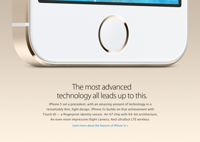 With the announcement still ongoing, details are arriving fast but the iPhone 5S looks very much like the iPhone 5…but you’ll have new color choices. Apple is introducing the iPhone 5S in silver, space gray and gold. Add in an A7 chip as the first 64-bit smartphone, 40x bump in performance and 56x in graphics performance over the original iPhone and you’ve got a workhorse. The camera has been improved with f/2.2 aperture and a sensor that’s 15 percent larger than the iPhone 5. You’ll still be working with 8 megapixels, but each pixel is now bigger to allow for more light. There’s 10fps burst mode, 120fps 720p slow-motion video mode and dual-LED flash for “true tone” images. Add in 10 hours of browsing on LTE and 10 hours of talk on 3G and you’ve got the iPhone 5S. Wait, one more thing…the fingerprint sensor is real and Apple will call it “Touch ID.” The scanner, embedded in the home button will allow for faster logins, help prevent unauthorized access and for making purchases in iTunes.