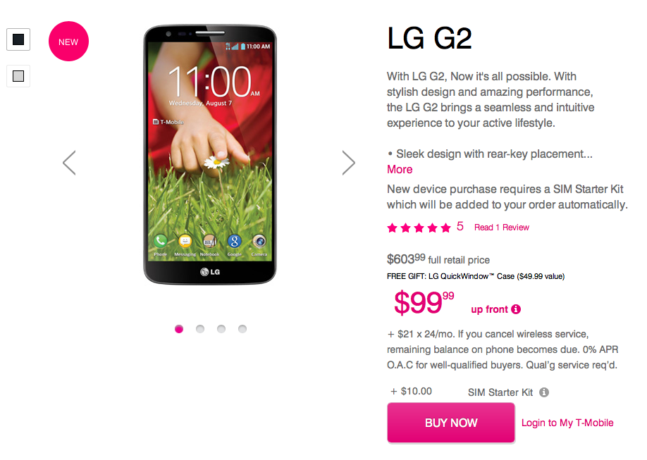 The device will hit T-Mobile retail stores, select dealers and national retail sores on September 25th. Through T-Mobile’s Simple Choice plan, the G2 will cost “well-qualified” buyers $99 down with 24 monthly installments of $21.