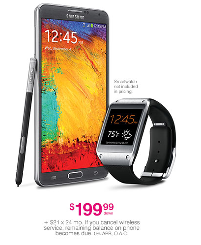 The Galaxy Note 3 will be available to pre-order on September 18 for $199.99 down with 24 equal monthly device payments of $21[1] (plus taxes and fees) with T-Mobile’s Simple Choice Plan. Pre-ordered smartphones are expected to start shipping on or before October 2. The Galaxy Note 3 and the Galaxy Gear companion smartwatch (sold separately) will launch nationwide at participating T-Mobile retail stores, select dealers, national retail stores and online at www.T-Mobile.com on October 2. For more information, please visit https://explore.t-mobile.com/samsung-galaxy-note-3.