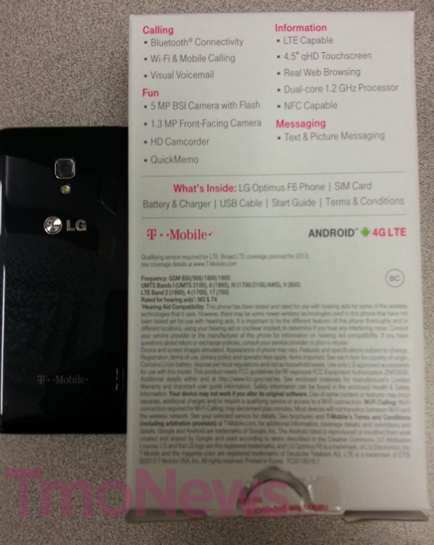 The LG Optimus F6 will be one of T-Mobile’s lowest-priced LTE offerings arriving on www.t-mobile.com today, and retail stores on September 11th. The device features a 4.5″ qHD display, 5 megapixel camera with “LG-exclusive advanced camera features” Android 4.1, a 1.2 GHz dual-core processor and up to 32GB expandable memory. The Optimus F6 will cost $49.99 down with 24 monthly payments of $10.