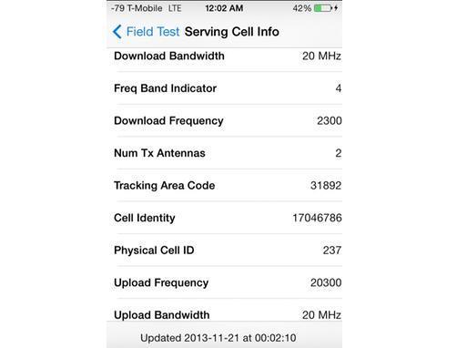 Field Test mode on his iPhone showed that it was definitely a 20+20 tower he was using too, notice the 20MHz on upload and download bandwidths: