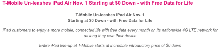 When the iPad Air pricing was announced last week, on the Apple store website it became clear that taking a cellular model iPad was going to pose a fantastic benefit for customers taking a tablet with a SIM from our favorite magenta carrier. Buying a cellular iPad with a Tmo SIM would give consumers a free 200MB slice of data each month to use with their brand new tablet. But there’s been some confusion.