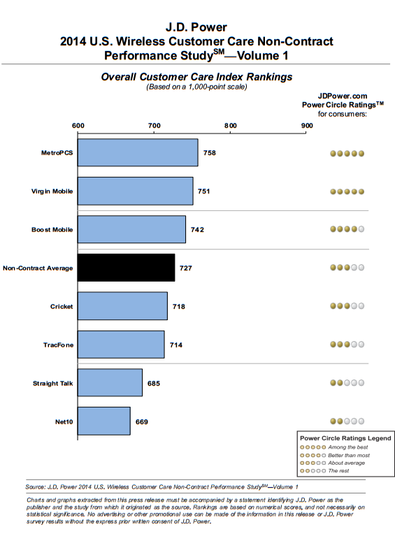 As well as T-Mobile improving, it was good news for prepaid carrier, MetroPCS which finished top of the “non-contract” carriers, ahead of Virgin Mobile, Boost Mobile, Cricket and TracFone.