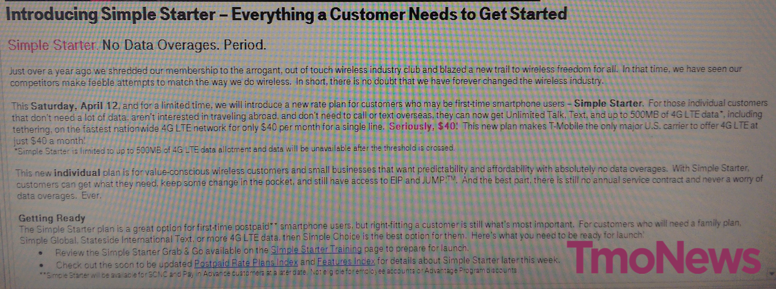 T-Mobile announces latest Uncarrier phase – Simple Starter $40 plan, goes live on April 12th