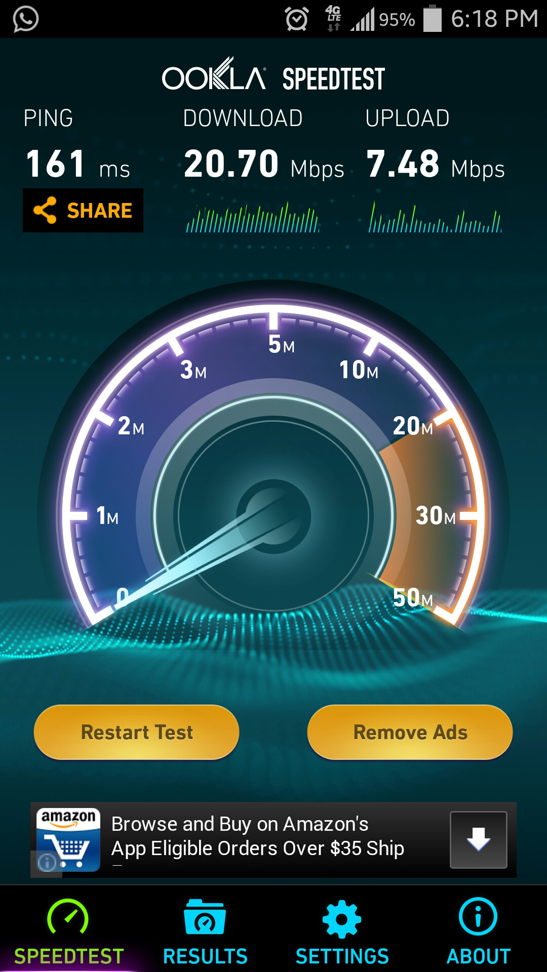 Using SpeedTest.net’s app, they pulled in some pretty speedy download results. 20.70Mbps down and 7.5Mbps uplink is nothing to be sniffed at (Unless you’re from Dallas…).