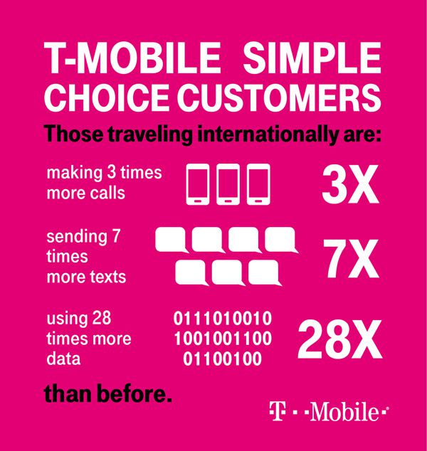 This morning T-Mobile announced some key figures showing just how successful the international roaming phase has been. Customers are calling 3 times more, texting 7 times more and using 28 times more data than they were before roaming was made part of the Simple Choice plans.
