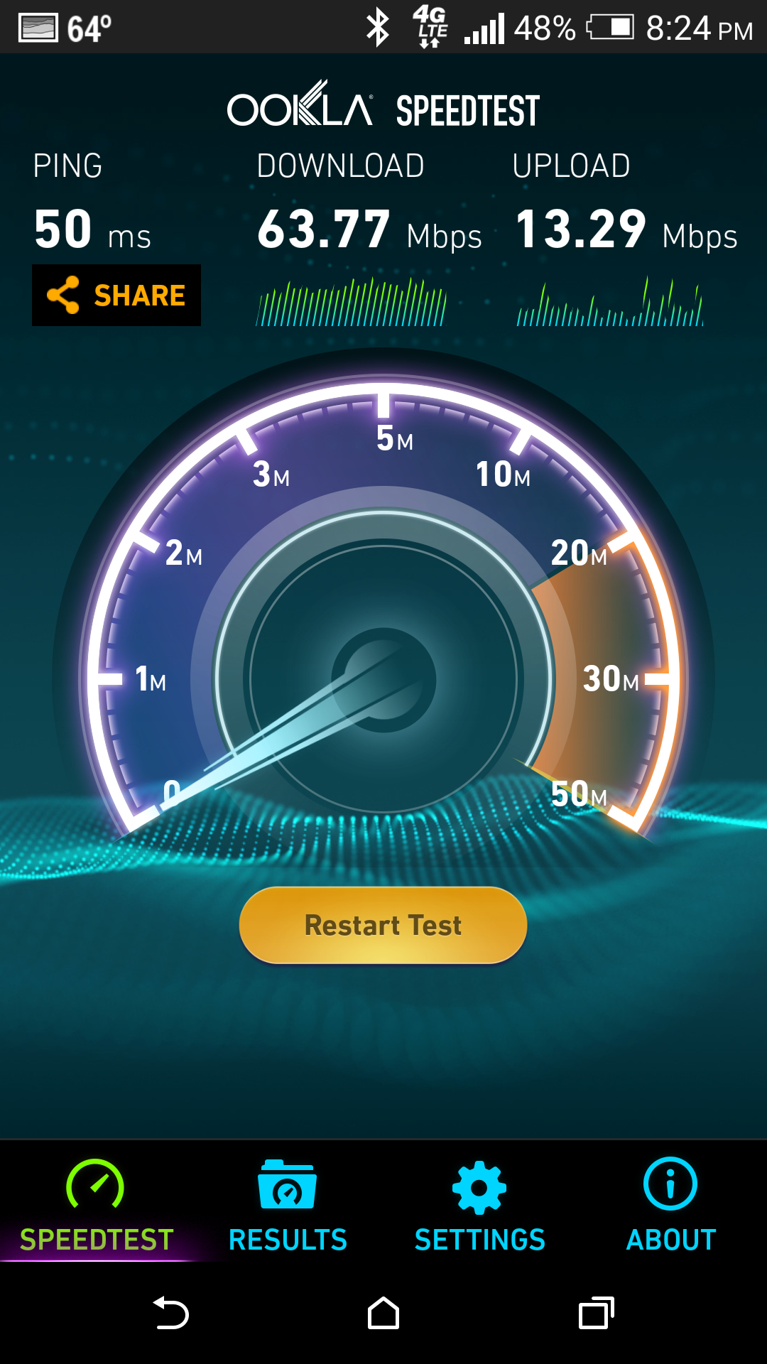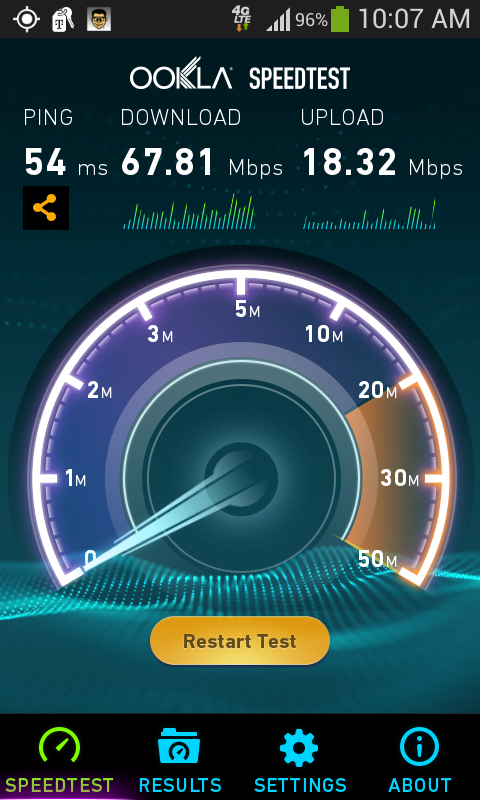 Like last week’s speed tests, the performance has increased from around the 25Mbps mark, and has virtually doubled. Thankfully, this time our reader, based in Houston, Texas sent a shot showing his device’s ServiceMode screen, which confirms the network being used is 15+15 (notice the 15MHz highlighted in the image).