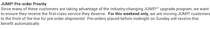 Great news for JUMP! customers, I’m sure. Not so great news for customers who aren’t on the JUMP! program, or are/were looking to switch from another carrier. Customers who have already pre-ordered the device aren’t being guaranteed shipment on the first day either. Popularity has clearly exceeded anything T-Mobile was prepared for this year. One customer who’d pre-ordered by 7:10am on Friday morning got the following message: