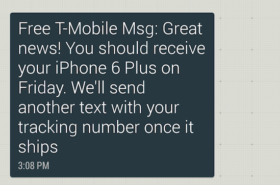 It’s worth noting that these orders were all placed on Friday (apart from a few JUMP customers who ordered at the weekend). And that even some who did pre-order on Friday still haven’t been given a concrete shipping date. One reader ordered the iPhone 6 Plus on Friday and received the following statement from T-Mobile today: