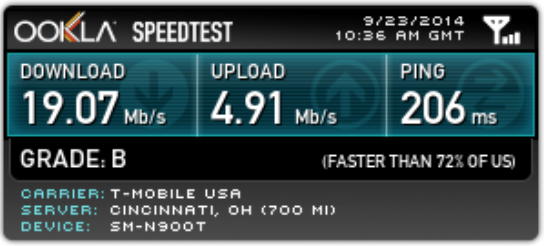 The highest we’ve seen was done in downtown Cincinnati and achieved 19Mbps download speed.