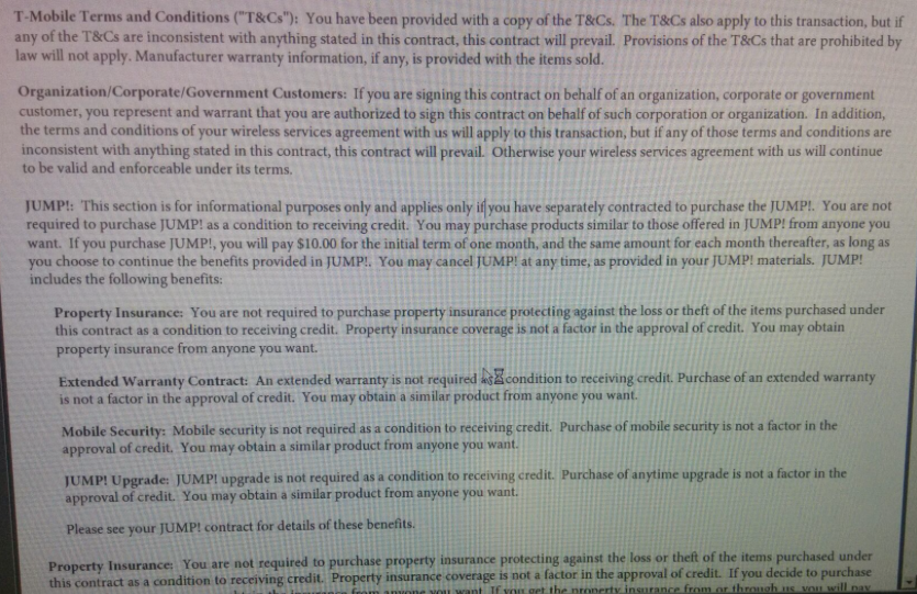 “The manager insisted that everyone is required to purchase the Jump Plan if the EIP is used for a purchase in a retail store. When asked why anyone would need Jump Plan for a $99 phone he told me it was required because T-Mobile wants to protect my phone. Thanks T-Mobile, but I am actually able to take care of my phone by myself.”