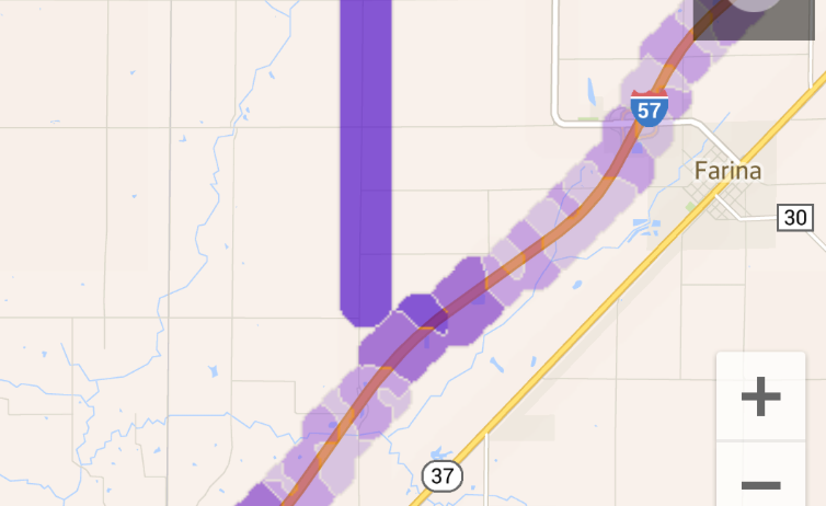 I have been seeing some LTE light up in rural southern Illinois … One of the towers that has lit up LTE is at Kinmundy Illinois and are seeing LTE across the I-57 towards Farina. The other area is Mount Vernon Illinois. We already had LTE downtown Mount Vernon but now it is on the interstate were 64 & 57 come together.