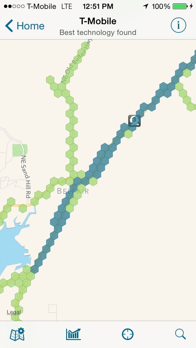 “Just sending a report on rural LTE upgrades. Belfair, WA has a population of about 6,500 people and was just updated to LTE from Edge over the weekend! Also, some rural highway in between towns got LTE.”