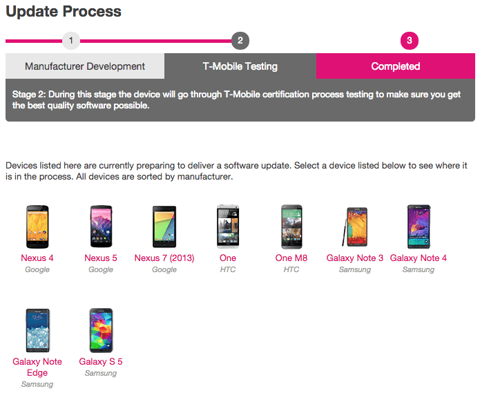 Yesterday evening, T-Mobile’s chief product guru tweeted out a link to a brand new page the company has been working on. The new Software Updates page within T-Mo’s support pages now lets you track how far along your next Android update is, and which model is being developed and tested.