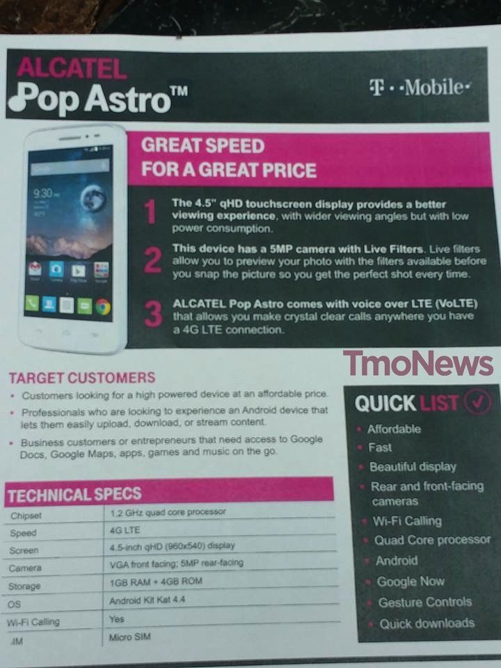 T-Mobile and Alcatel OneTouch have worked together on a number of budget-friendly smartphones and tablets. That relationship, it seems, is set to continue. We’ve been sent a cheat-sheet detailing a new, cheap handset on its way to T-Mobile soon.