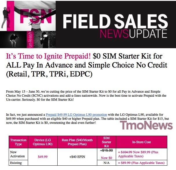 All in, customers walk out having paid $89.99 (plus taxes). That’s $49.99 for the phone, $40 for the first month of the prepaid plan, and $0 for the SIM Starter Kit. It’s a substantial saving on the previous all-in price of $154. From what we can tell from the memo, and from speaking with sources, this is in-store only and it’s available at corporate, branded stores and authorized T-Mo dealers.