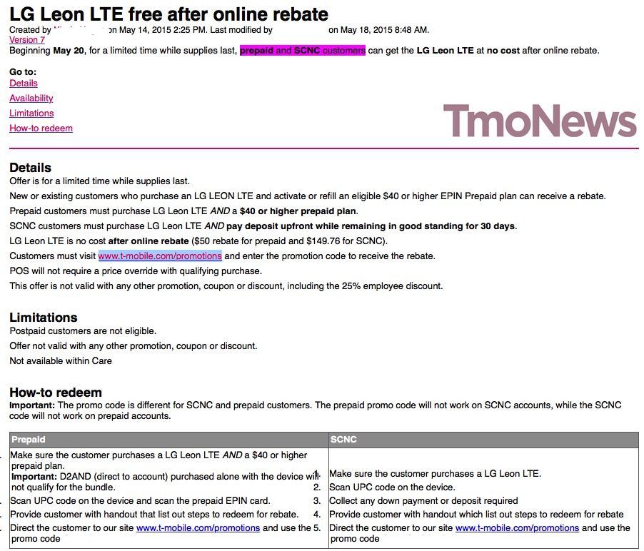 How it works on both prepaid and SCNC will be different. The Leon has a full retail price of $149.76, that’s ($0 down and 24 monthly payments of $6.24 on EIP for regular postpaid customers). Prepaid customers will see the price dropped down to just $50 at checkout and then be able to claim the $50 back online as a promotional rebate. Customers on the no credit Simple Choice plans, however, pay $149.76 up front and then claim that amount back as a rebate online at T-Mobile.com/promotions. In the end, neither customer pays for the device, they just get different amounts as a rebate to take their effective tally to $0.