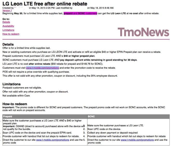 How it works on both prepaid and SCNC will be different. The Leon has a full retail price of $149.76, that’s ($0 down and 24 monthly payments of $6.24 on EIP for regular postpaid customers). Prepaid customers will see the price dropped down to just $50 at checkout and then be able to claim the $50 back online as a promotional rebate. Customers on the no credit Simple Choice plans, however, pay $149.76 up front and then claim that amount back as a rebate online at T-Mobile.com/promotions. In the end, neither customer pays for the device, they just get different amounts as a rebate to take their effective tally to $0.