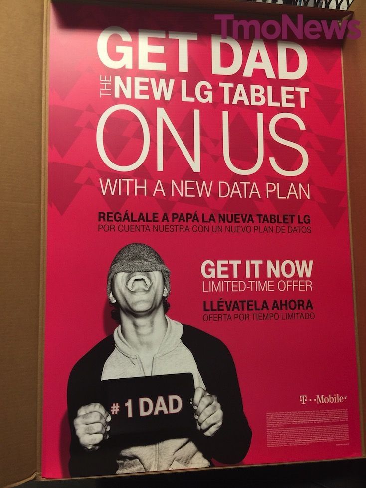 T-Mobile has sent flyers to its retail locations to promote the free tablet offer (bottom of this post). The headline: “Get Dad the new LG Tablet On Us with a new data plan.” Although it doesn’t say so in the big, bold font, a communication has been sent out to prepare retail staff of the upcoming deal.