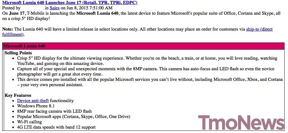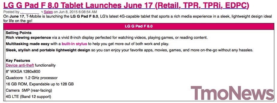 We’ve been wondering about the official launch date for T-Mobile’s Microsoft Lumia 640 for some time, and now we finally have evidence from one of our sources. T-Mo communicated to staff that the long-awaited budget Windows Phone will be arriving on store shelves in time for a June 17 launch. And it’s not coming along. LG’s G Pad 8.0 tablet will be released in Magenta-flavor on the same day.