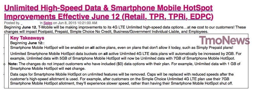A communication was shared with T-Mobile staff informing them that from June 12, all “active plans” will have Smartphone Mobile Hotspot enabled. Changes will “impact Postpaid, Prepaid, Simple Choice No Credit, Business/Government Individual-Liable, and employees.” Even plans that don’t currently allow you to use your phone as a hotspot will have the feature added. That includes Simply Prepaid plans.