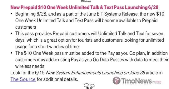 As well as these new, super-useful SIM cards, T-Mobile is also going to launch a brand new short-term prepaid plan (or add-on). From June 28th, T-Mobile is going to roll out a 7-day, unlimited talk and text pass for prepaid customers. It costs $10 for one week’s use and is being pitched as a “great option for tourists and customers looking for unlimited usage for a short window of time.”