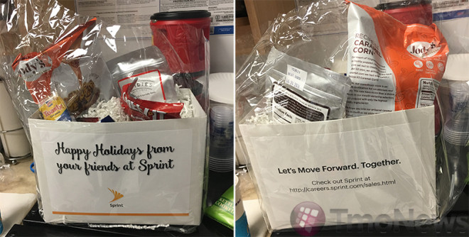 There hasn’t been much noise about these Sprint gift baskets, and a source says that that’s because T-Mobile leadership has told stores to discard the baskets and avoid posting about them on social media. That’s likely to avoid giving Sprint a bunch of news headlines for sending these gift baskets. Some store managers may have tossed out the food like they were instructed, which seems wasteful, especially this time of year, but at least one appears to have just let their hard-working employees dig in.